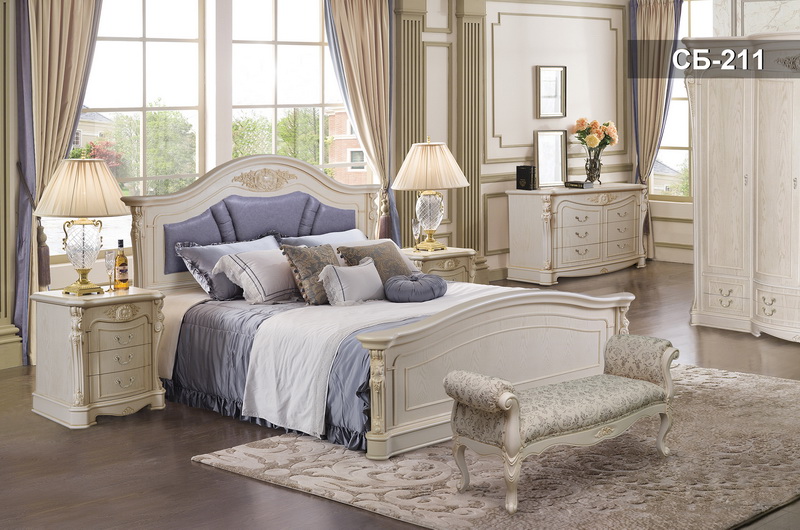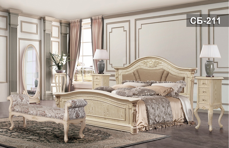 Ніжне та витончене двоспальне ліжко СБ-211 наповнить вашу кімнату світлом. Міцний різьблений каркас та м'яка вставка в узголів'я надає ліжку особливого шику.