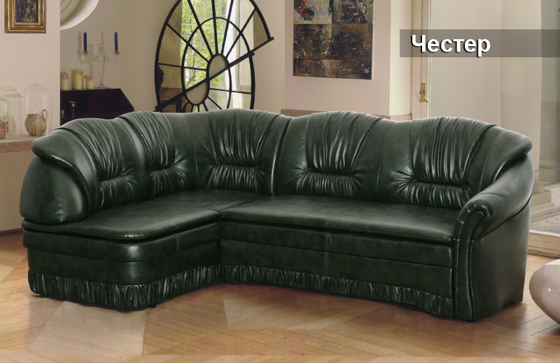 - варіанти виготовлення Честер: диван кутовий, диван-ліжко кутовий, крісло;