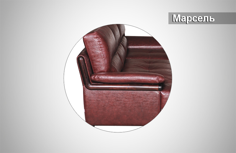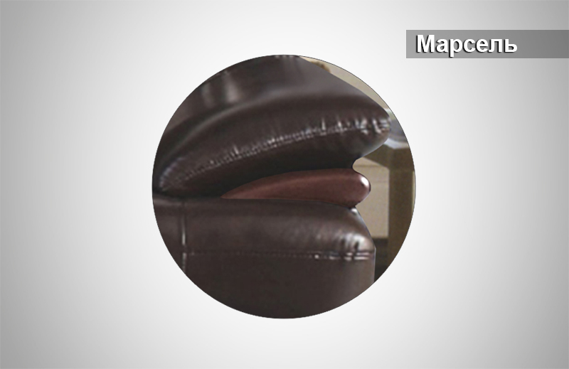 Ефектний Марсель з легкістю стане центральною частиною будь-якого інтер'єру в сучасному стилі. Стяжки з гудзиками на сидіннях і глибокі горизонтальні утяжки спинок надають дивану візуальну м'якість, а додаткові подушки на локітниках істотно підвищують зручність і функціональність. Декоративні накладки, з натурального дерева, підкреслять форму боковини та гармонійно доповнять образ усього виробу.