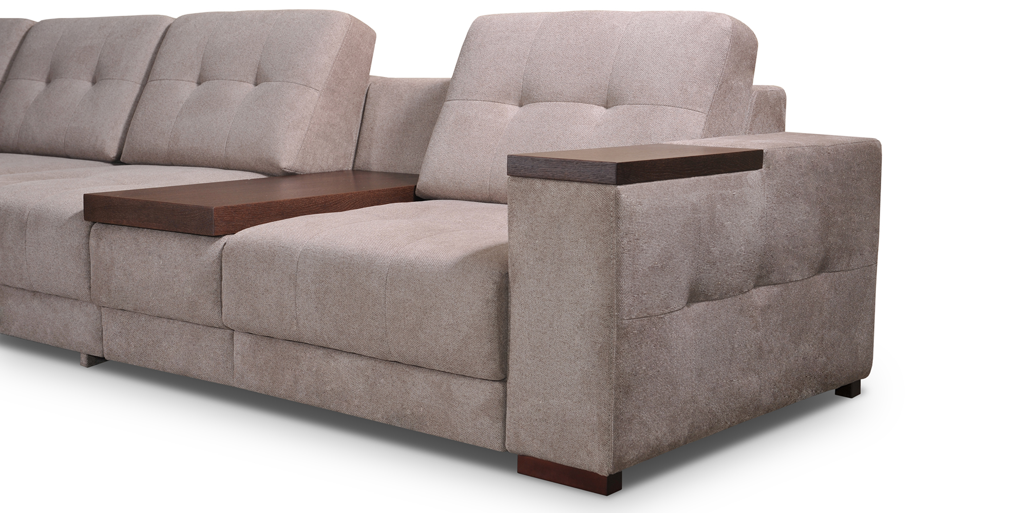 Комплект Грей-Н це ідеальне поєднання суворого мінімалізму та комфортного шику. Стяжки на сидіннях, спинках та боковинах візуально підкреслюють комфорт та м'якість виробу, надаючи моделі неповторного характеру. Боковини, представлені в 3-х випадках виконання, гармонійно доповнюють короткий силует. Барна боковина зі зсувною стільницею та вбудованою нішою додасть нотку ексклюзивності цьому виробу.
