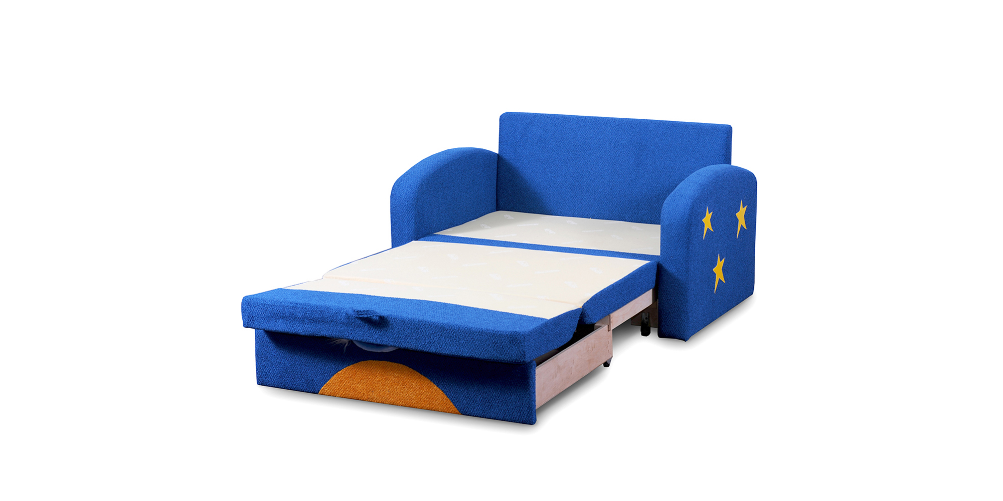 Характерною особливістю моделі є викочуваний механізм, завдяки якому, висунувши нішу і опустивши на неї верхню частину сидіння і спинки, ми отримуємо зручне спальне місце.
