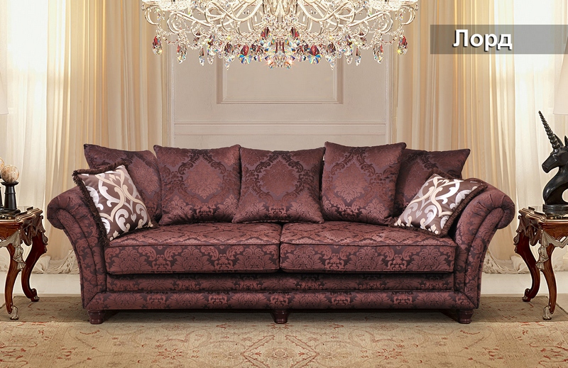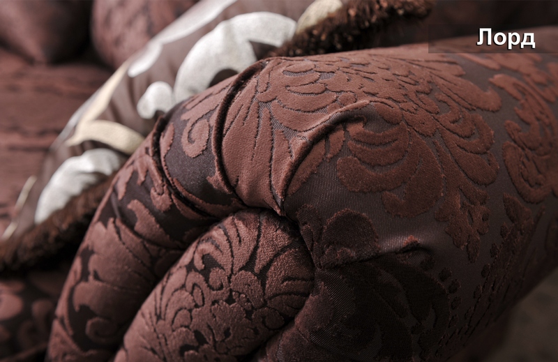Елегантний комплект Лорд наповнить Вашу вітальню приголомшливою розкішшю та шляхетністю. Красива геометрія ліній підкреслена незвичайною формою боковин. М'яка жакардова тканина з класичним малюнком створює неповторний привабливий образ. Декоративний шнур підкреслює контури подушексидінь, а окантовка декоративних подушок бахромою надає виробу деяку загадковість і ніжність. Глибоке сидіння і купа м'яких подушок подарують відчуття безтурботного спокою та затишку.