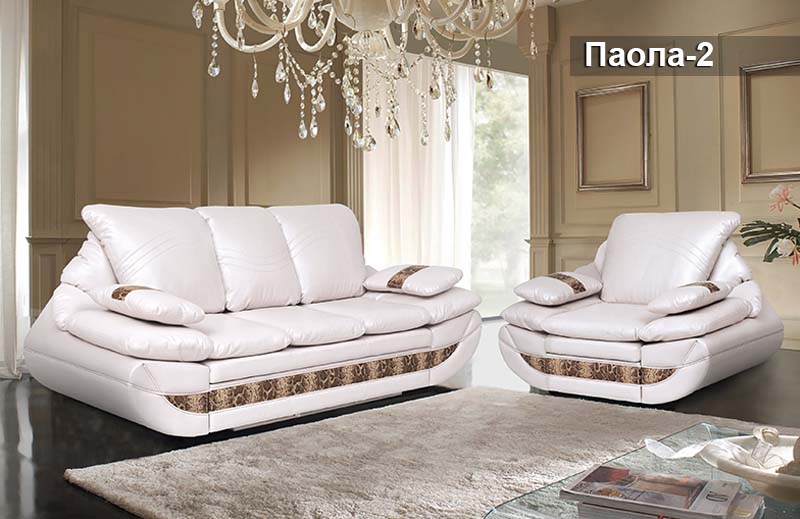Сучасний та стильний комплект Паола-2 відрізняється унікальним дизайном та невимушеною елегантністю. Злегка підняті боковини, відсутність гострих кутів, вигідно виділяє виріб, надаючи йому візуальної м'якості та затишку. У ролі підлокітників виступають компактні подушки, на які можна з комфортом прилягти. Декоративне оздоблення царги надає комплекту вишуканості та витонченості.