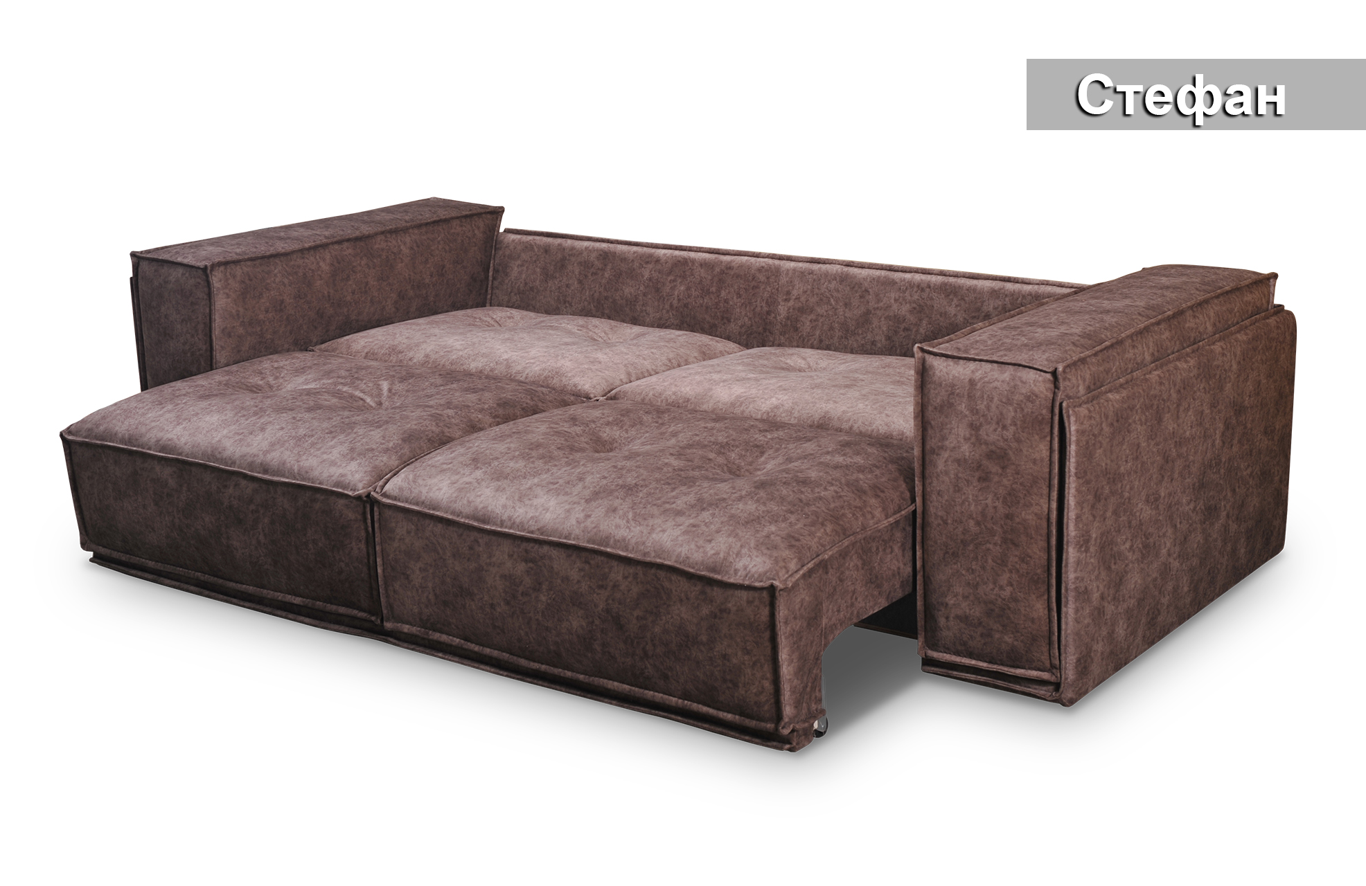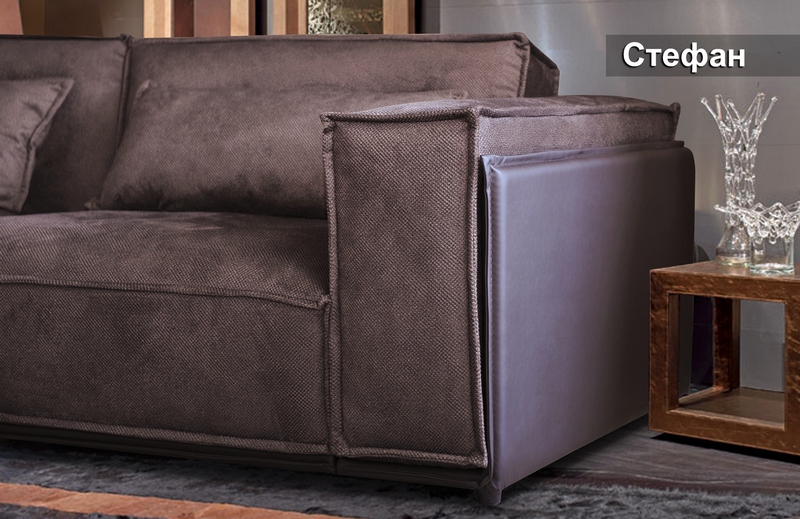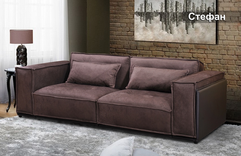 Неординарний комплект Стефан, завдяки великим обсягам та м'якості форм, стане ідеальним варіантом для Вашого відпочинку. Широкі підлокітники, низька висота посадки, м'які сидіння та  валики для додаткового комфорту спини,  допоможуть прийняти зручне становище і розслабиться. Легкі утяжки,  виконані на центральних частинах сидінь і спинок, гармонійно доповнюють лаконічний силует, а декоративний кант підкреслює форму і завершує образ виробу.