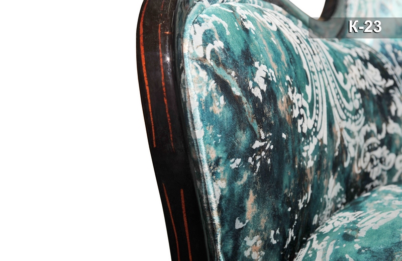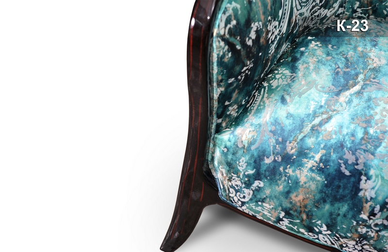 Стильне та гармонійне крісло «К-23» одразу привертає погляд своєю зовнішньою красою. Міцний каркас, виготовлений із масиву натурального дерева, оперізує виріб по периметру. Висока спинка з невеликим нахилом і так звані крильця з боків спинки створюють огортаючий ефект. Декоративний шнур підкреслює передню частину м'якого сидіння, контур спинки та боковин, надаючи їм чіткості та завершеності.