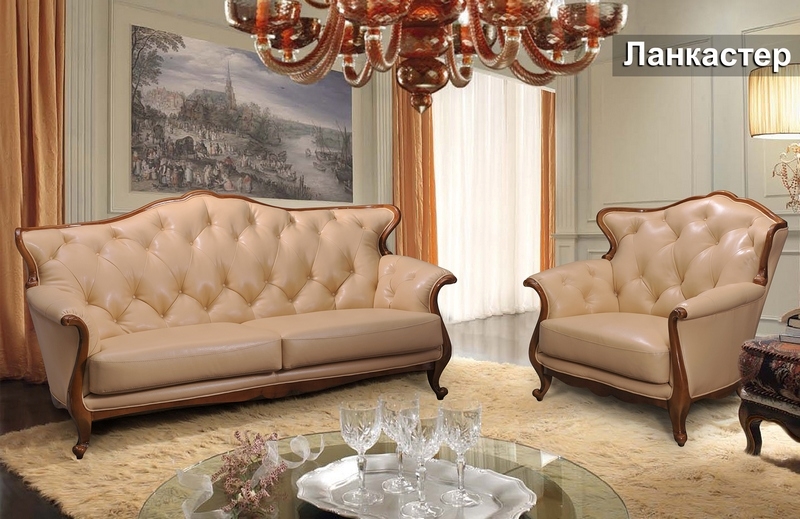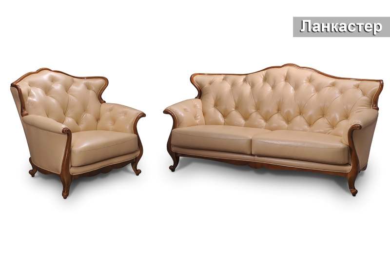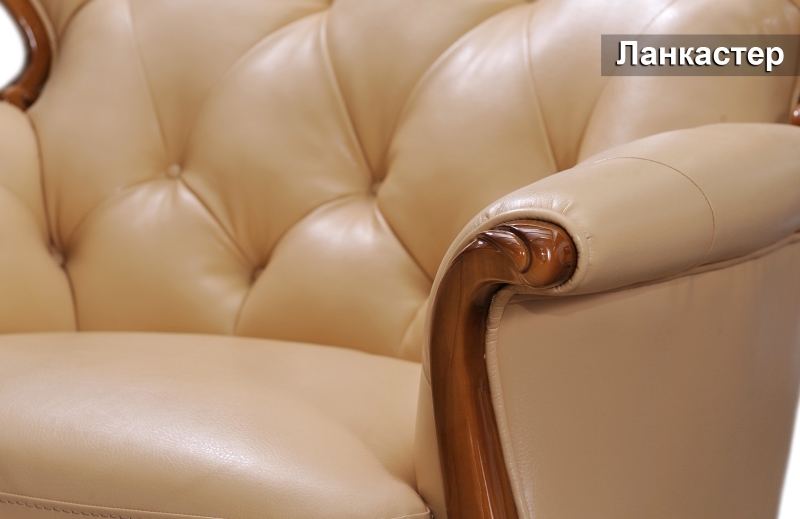 Класичний комплект Ланкастер перетворить і прикрасить будь-який респектабельний інтер'єр. Міцний каркас, виготовлений з масиву натурального дерева, опоясує виріб по периметру. Плавні вигини лінії спинки і підлокітників, а також вишуканий стібок капітоне, на внутрішніх частинах, надають меблям розкішний і граціозний вигляд. Застосування як наповнювач розпушеного холлофайбера, забезпечує спинкам і боковинам м'якість та комфорт.