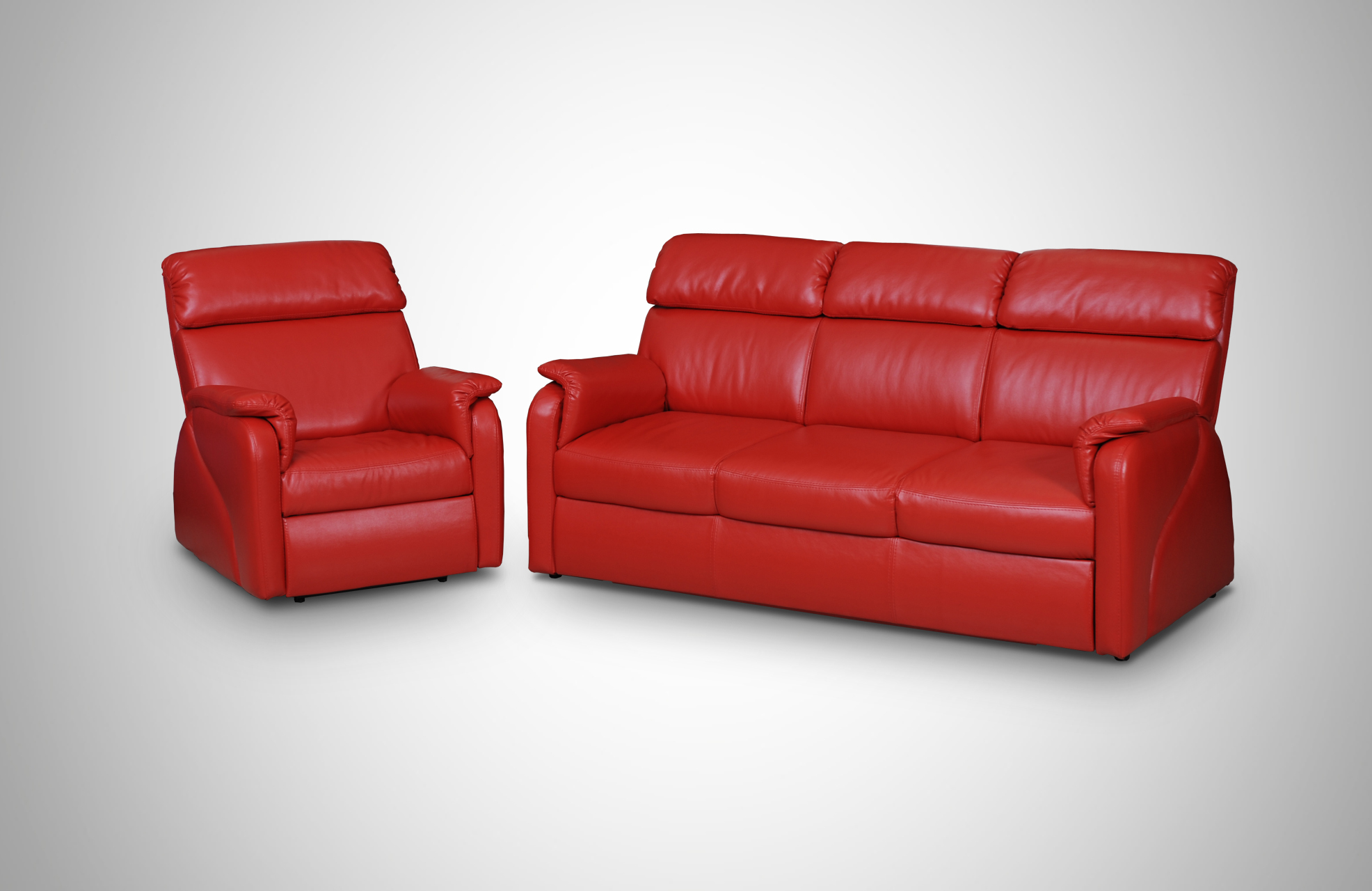 Зручний та універсальний комплект Санрайз стане ідеальним рішенням для тих, хто віддає перевагу лаконічним меблям з нестандартними елементами. Чудове поєднання плавних форм та відсутність гострих кутів візуально полегшують виріб. Вбудовані механізми в спинках дозволяють легко змінювати її висоту, для комфортнішого відпочинку в положенні «релакс». Глибока горизонтальна утяжка із зовнішнього боку локітника та додаткова подушка на ньому, вигідно виділяють його дизайн.