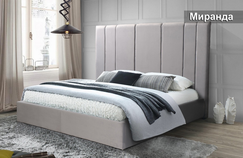 Вишукане ліжко Миранда стане яскравим відображенням сучасної моди і припаде до смаку найкреативнішим цінителям. Продумана композиція наповнить простір спальні романтикою і шиком. Модель представлена на прямокутному каркасі, який встановлений на невисоких ніжках. М'які складки витонченого драпірування на узголів'я, створюють приємну фактуру і надають виробу неповторний шар.