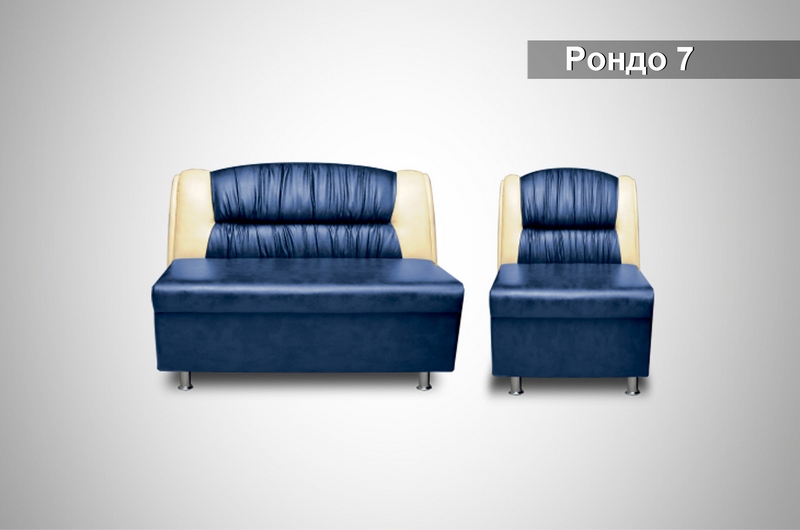 The stylish set “Rondo-7” will become an indispensable element of furniture for accommodating guests. The front parts of the backrests, complemented by horizontal ties with drapery, highlight the design of the product, giving it a unique and inimitable look, and chrome-plated supports stylishly complement its image.