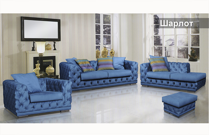 The beauty of the classic shape of the Charlotte set will add a touch of luxury and respectability to your living room. The main accent of the model is the hand finishing with the capitonné stitch, which creates a spectacular volumetric pattern with drowning buttons. Low, wide backrests are complemented by soft cushions that provide comfort and seating comfort.
