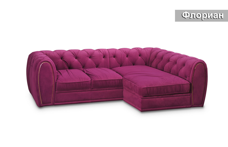 Респектабельный и роскошный Флориан создан  для того, чтобы Вы получали максимальное удовольствие от жизни. Спинку и локотники украшает стежка-капитоне. Утопающие в мягкой обивке декоративные пуговицы образуют ромбовидный узор. Особый шарм и эффект боковинам придает молдинг. Создавайте свой идеальный диван, выбрав оформление сиденья в небрежной форме или с четкими лаконичными линиями.