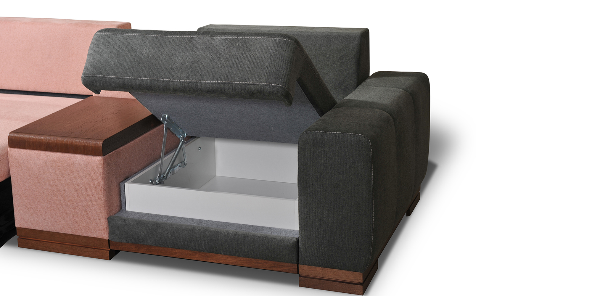 - вместительный короб для хранения в кушетках и бар-вставке;