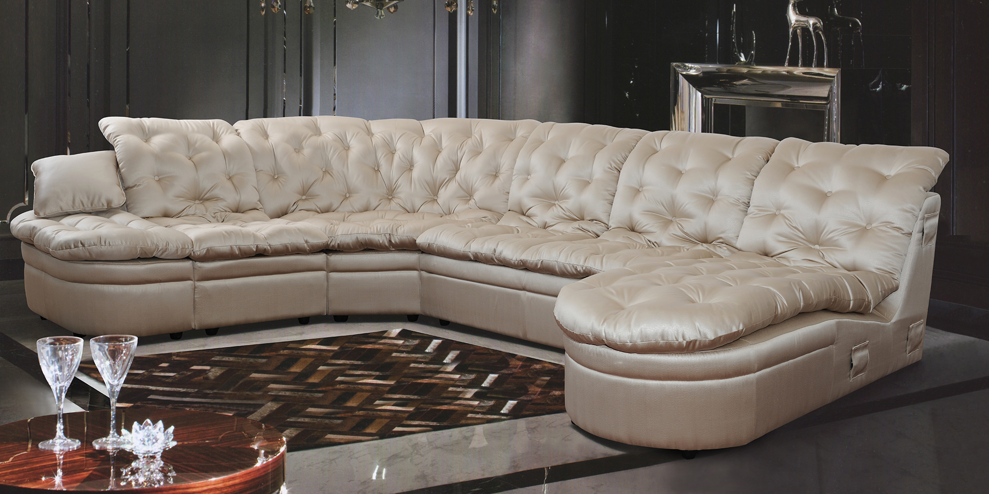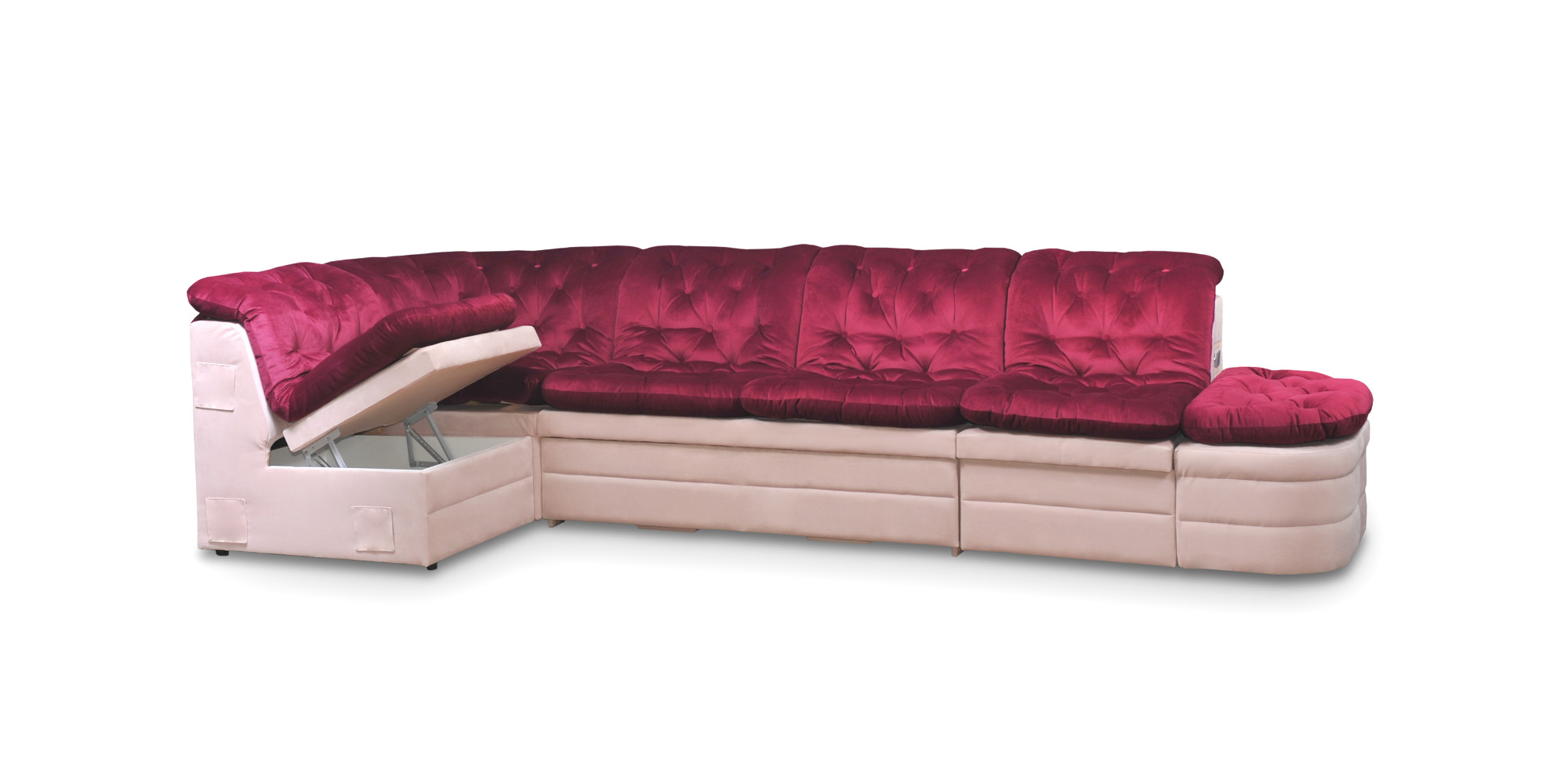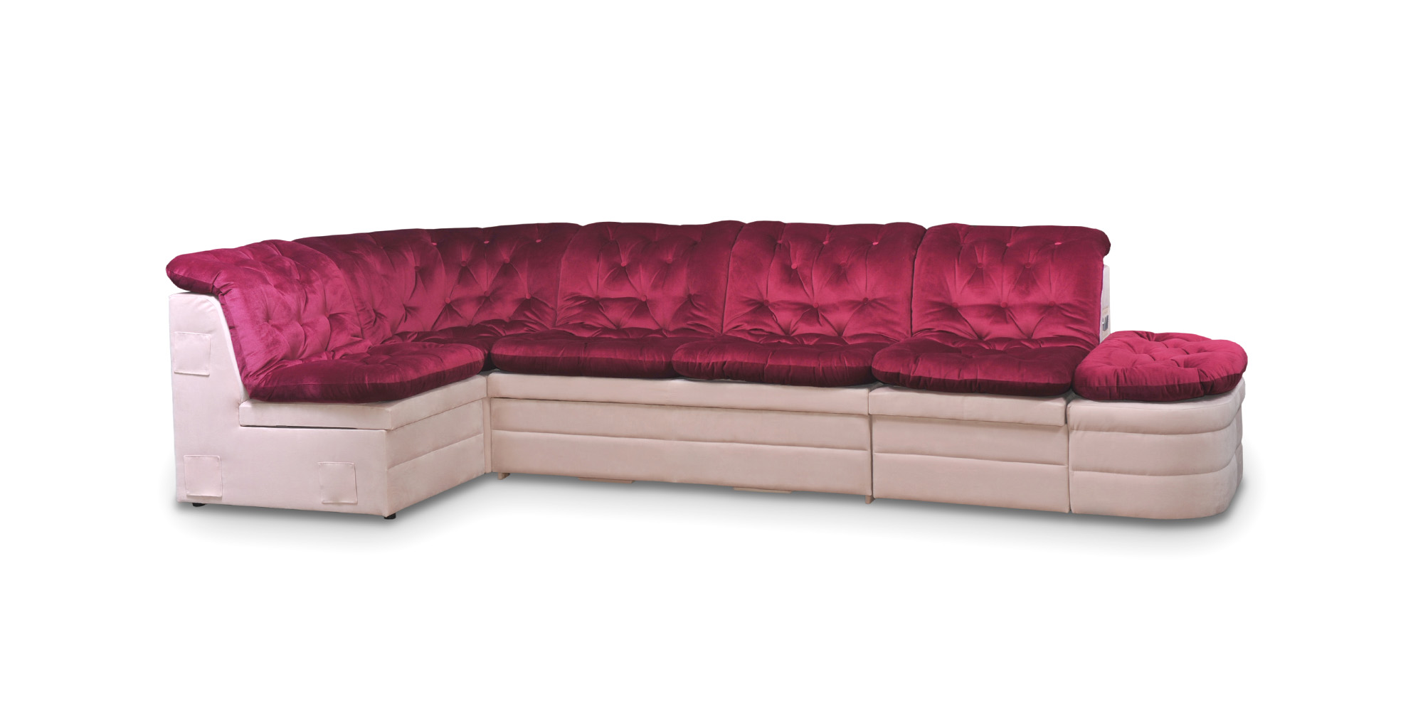 Презентабельный дизайн комплекта Корадо вызовет искренний восторг у Ваших гостей и подчеркнет Ваш изысканный вкус. Плавные линии подушек, выступающие как единое целое, помогут Вам расслабиться и насладиться отдыхом в полной мере. Глубокие стяжки с пуговицами придают модели визуальную мягкость, а отсутствие подлокотников облегчает изделие и дарит Вам ощущение свободы пространства.
