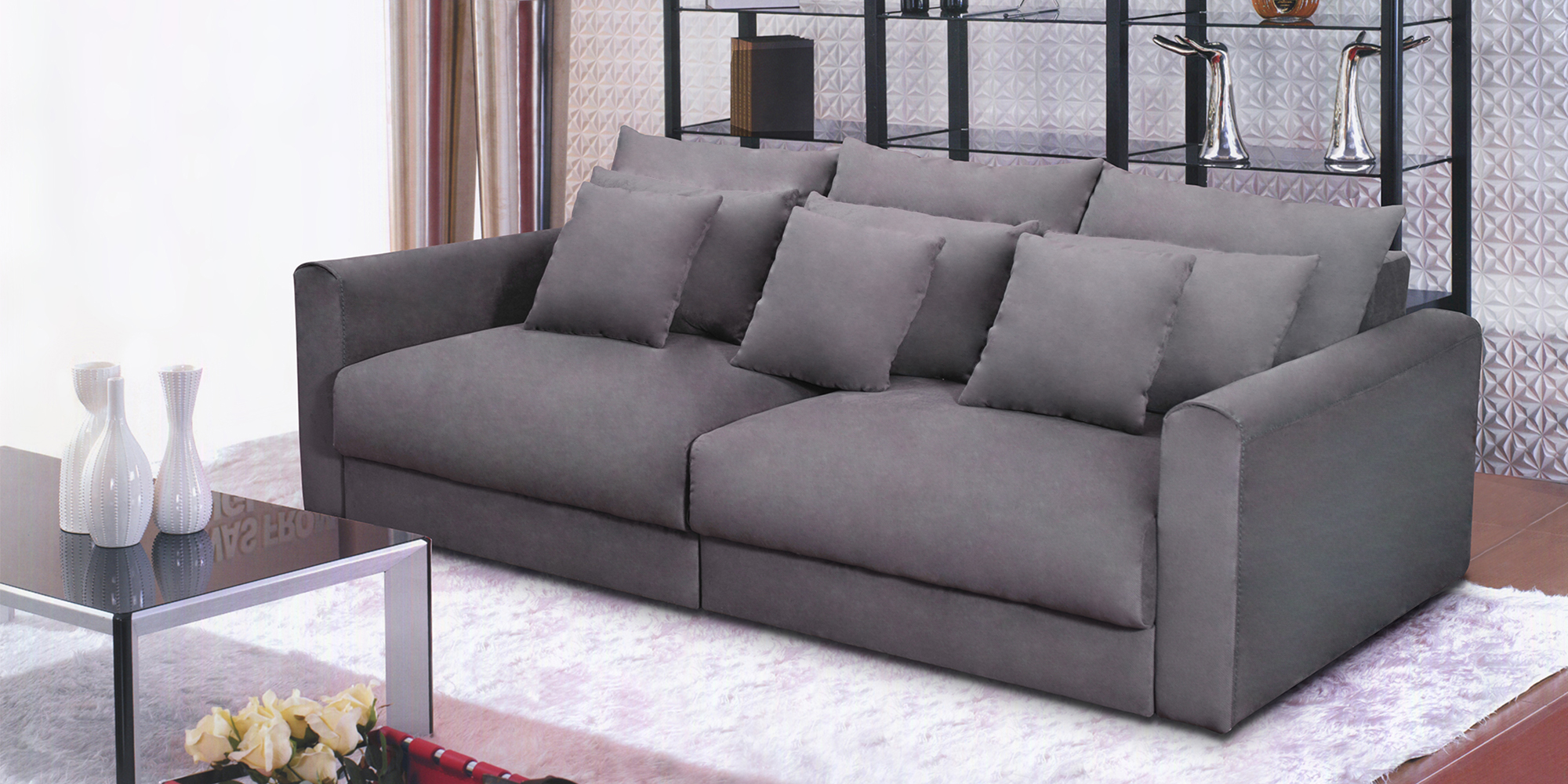 Удобный и уютный комплект Дориан станет украшением и главным элементом интерьера Вашей гостиной. Невысокая спинка дополнена набором мягких подушек, которые дают возможность ощутить удобство и комфорт изделия.