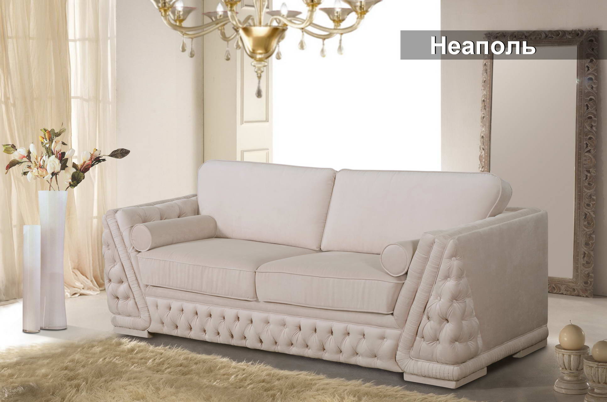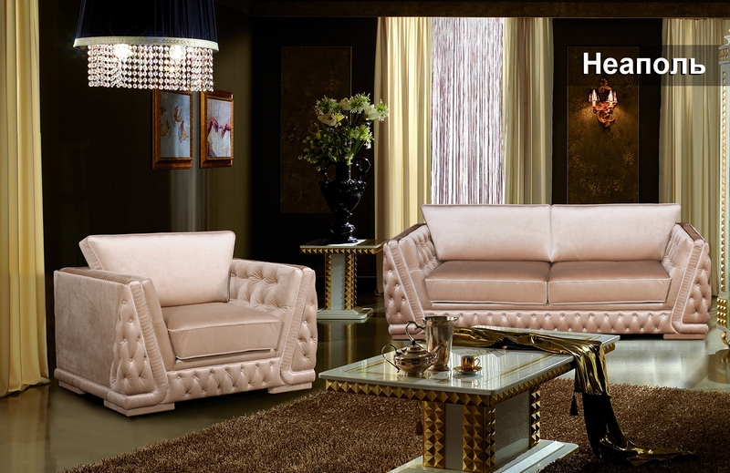 Неординарный комплект Неаполь, выполненный в классическом стиле, придаст Вашей гостиной презентабельный и неповторимый облик. Передние панели, внутренние и наружные части локотников пикантно украшены стежкой-капитоне. Утопающие в мягкой обивке декоративные пуговицы образуют красивый ромбовидный узор. Декоративный шнур подчеркивает контуры подушек сидений и спинок, а мягкие складки изящной драпировки, проходящей по наружных, передних и верхних частях локотников, а также верхних частях спинок, придают комплекту неповторимый шарм.