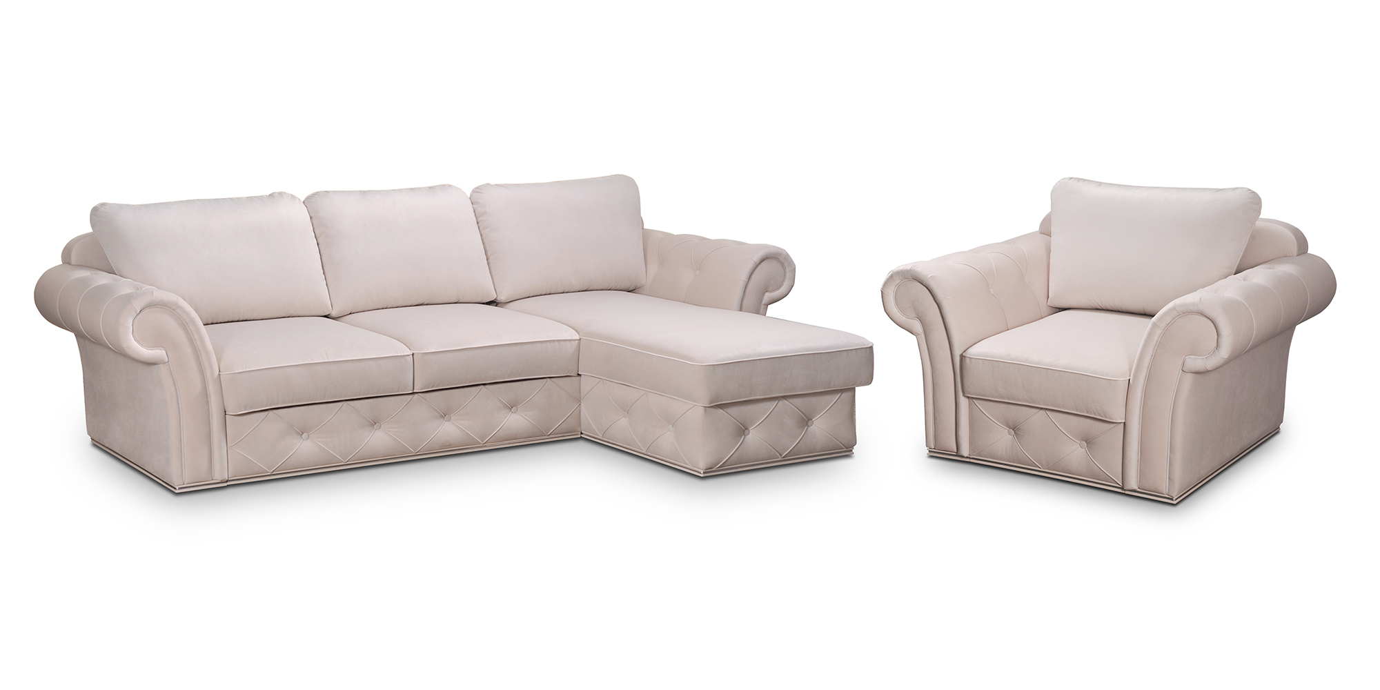 Восхитительный комплект Ароса выполненный в классических традициях, словно магнит, притягивает взгляд. Изящные завитки боковин придают мебели элегантный силуэт. Передние панели и верхние части локотников украшают стяжки с утопающими пуговицами, создающие ромбовидный узор. Декоративный шнур, из основной ткани, подчеркивает контуры подушек сиденья и мягких спинок. Эффектный молдинг на ножках, имитирующий металлическую планку, гармонично дополняет образ изделия.