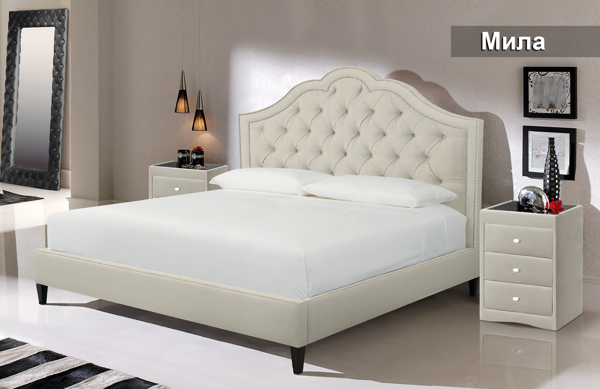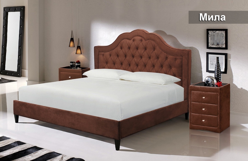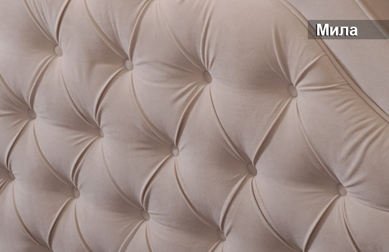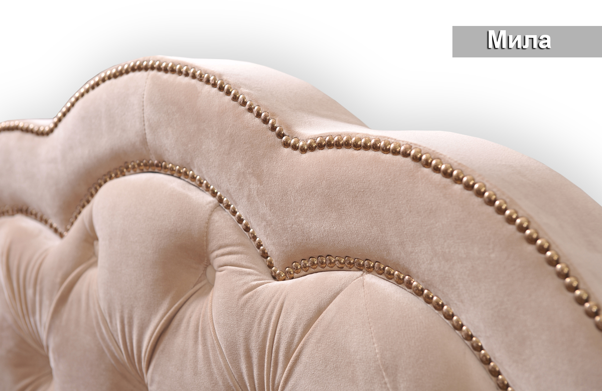Комплект Мила этовеликолепное сочетание классической выразительности и современнойфункциональности. Его элегантные гармоничные формы и роскошный текстиль делаюткаждый предмет душевным и харизматичным, создавая атмосферу спокойствия игармонии. На Ваше усмотрение фигурное изголовье кровати может быть подчеркнутодекоративным кантом или декоративными гвоздями, а его мягкая часть украшенаромбовидными стяжками с пуговицами или со стразами.